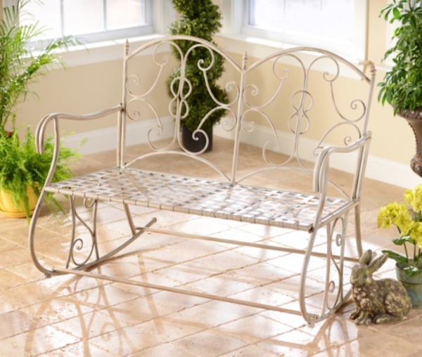 Vintage White Metal Rocking Bench Kirklands